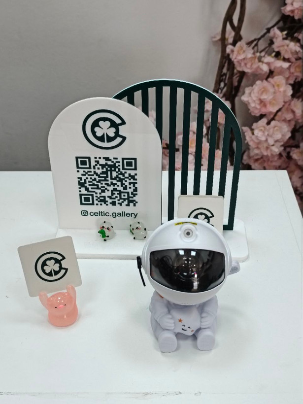 پروژکتور کهکشانی طرح فضانورد نشسته یک چراغ خواب با قابلیت پخش افکت تصویر زنده کهکشانی بر روی سقف و دیوار اتاق است که به همراه افکت لیزر ستاره ای حس یک سفر کهکشانی را قبل از خواب به شما میدهد . تلفیق همزمان تصویر زنده کهکشانی و لیزر ستاره ای جذابیت اتاق خواب شما را چندین برابر میکند . این محصول دارای ریموت کنترل نیز می باشد که میتواند نور پرژکتور یا لیزر را کم یا زیاد و یا برای روشن ماندن محصول تایمر تعریف کنید